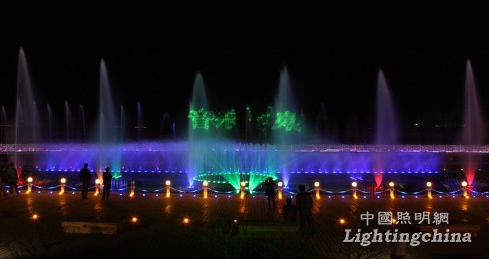 5. 结合场地,因地制宜。针对广场现有的建筑立面、园路、水景等条件,设置了投影、古代灯具展示廊道、水中植物等形式的装置,使光有机的结合在建筑与景观之中,并与环境融为一体。