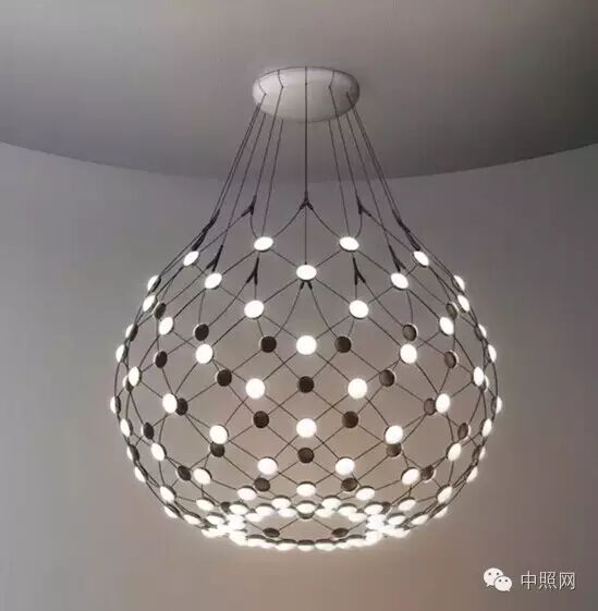 基于对LED灯潜在性能的实验,将灯具分离成多个小单元,是对传统枝形吊灯的创新演绎。它的外部结构近乎透明,由金属电缆网以及点缀在电缆网接口上的LED灯组成。其卓越的建造方法巧妙地隐藏了灯具的复杂结构,同时在视觉上降低产品的材料感。此外,灯具拥有高度自由的可操控性:不仅可以调节光的强度,也可以选择照明区域:上部环形区域、下部区域或横向扇区都可以由一个LED灯点亮。