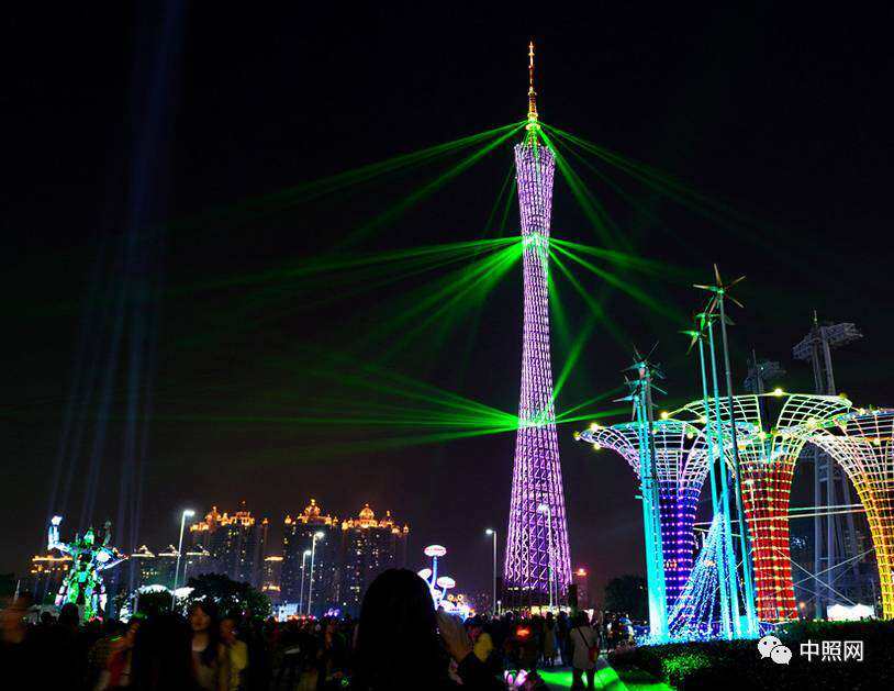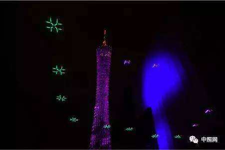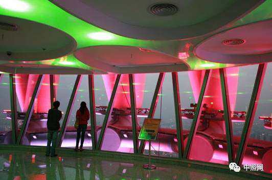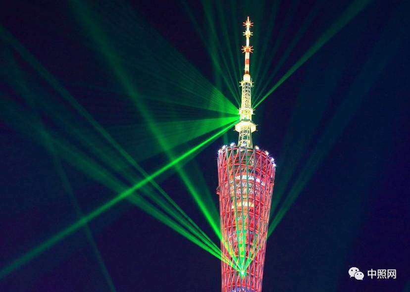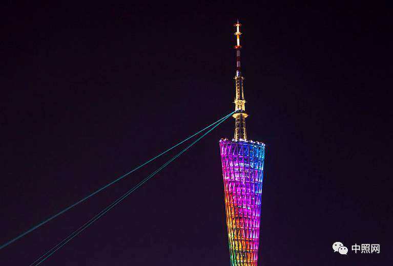 塔顶有三台射程超过1000米的激光灯束,分别指向珠江新城的广州双塔和中信广场;