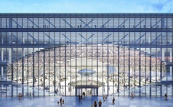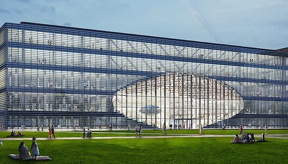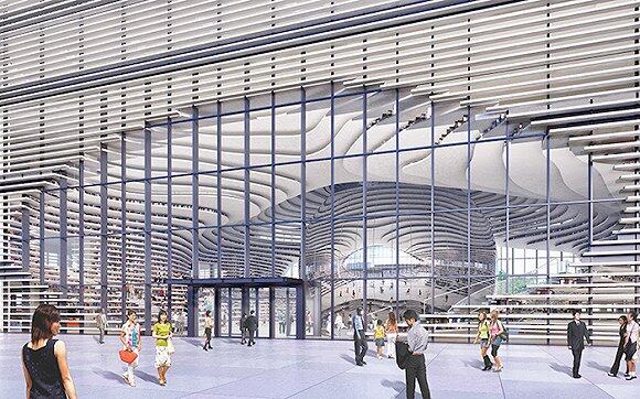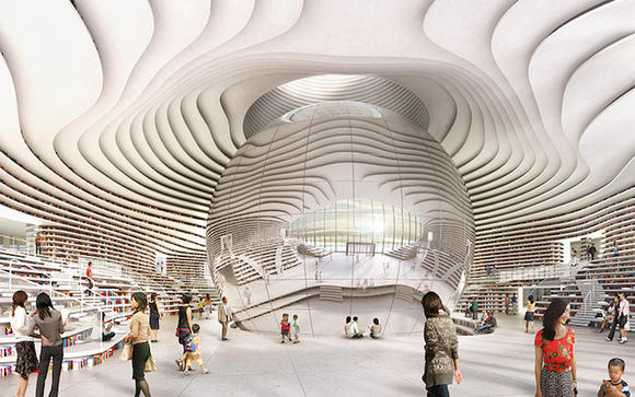 据了解,滨海图书馆是由荷兰MVRDV与天津市城市规划设计研究院建筑分院合作设计,总建筑面积33700平方米。立意“滨海之眼”和“书山”。