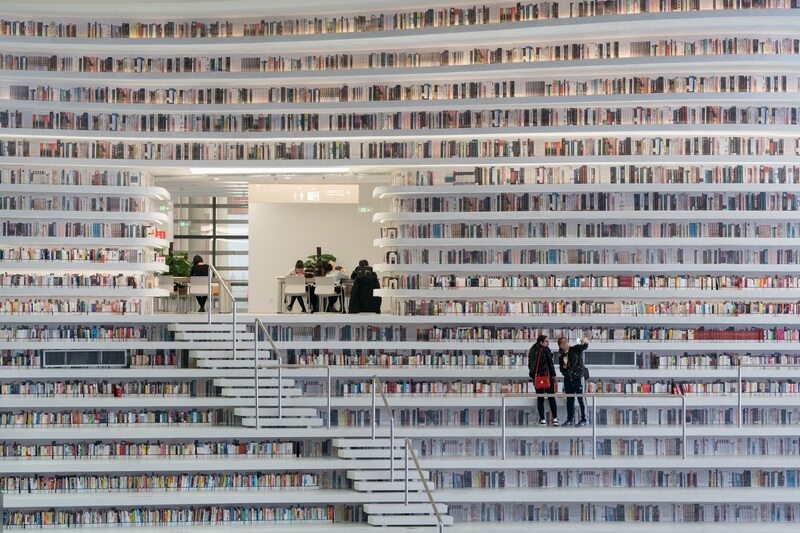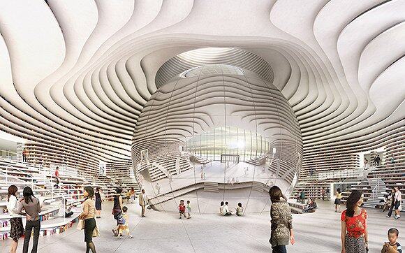 在天津大连东道与中央大道交口处的滨海图书馆因其极具“科幻感”的设计在网络迅速走红。不少网友评论道:“这才是人类进步的阶梯。知识的海洋原来是这样的啊。又刷新了对图书馆印象的理论新视野。”