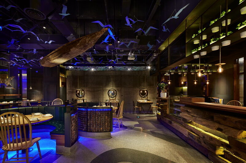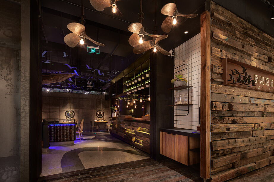 设计师们亲赴海边,边走边看,近距离观察渔民的生活,深层地去剖析大海文化,期间感受到了特别的、有意思的海洋文化元素。将这些原汁原味的海洋元素,运用到餐厅的设计中,正因为如此,这样的设计包含了更多的人情味和历史感,也让 “原製原味”餐厅具备了自身的特色和文化,使人对它口目皆难忘。
