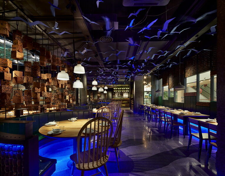 导语: 设计师们亲赴海边,边走边看,近距离观察渔民的生活,深层地去剖析大海文化,期间感受到了特别的、有意思的海洋文化元素。将这些原汁原味的海洋元素,运用到餐厅的设计中,正因为如此,这样的设计包含了更多的人情味和历史感,也让 “原製原味”餐厅具备了自身的特色和文化,使人对它口目皆难忘。