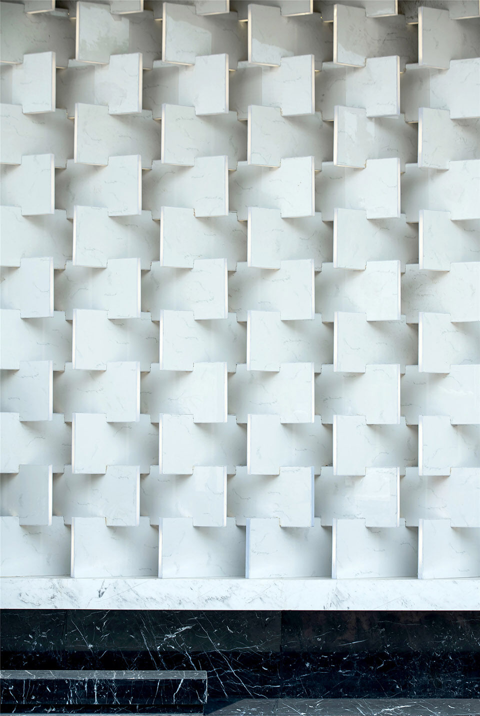 独一份匠心,独一份观感。元素与材料交错之美,来自巧妙的艺术运用和情感抒发。立面肌理在似与不似之间,仿若寻常物事,又如条缕交织。光线在每个部分均呈现多姿多彩的形态化表达,达到极佳的现代主义平面构成效果。