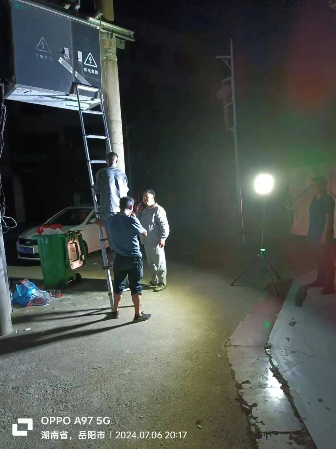 在抢险救援现场,两个办事处在省防汛指挥部的统一指挥下,与应急救援部门和供电抢修团队紧密配合,科学部署照明设备并保障设备稳定运作。白天,他们与抢险救援人员并肩作战,搬运设备、架设线路、调试发电机,汗水浸湿了衣背,却无人退缩;夜晚,他们为值守人员、公安干警及志愿者提供照明支持,确保每一个关键区域都能被照亮。