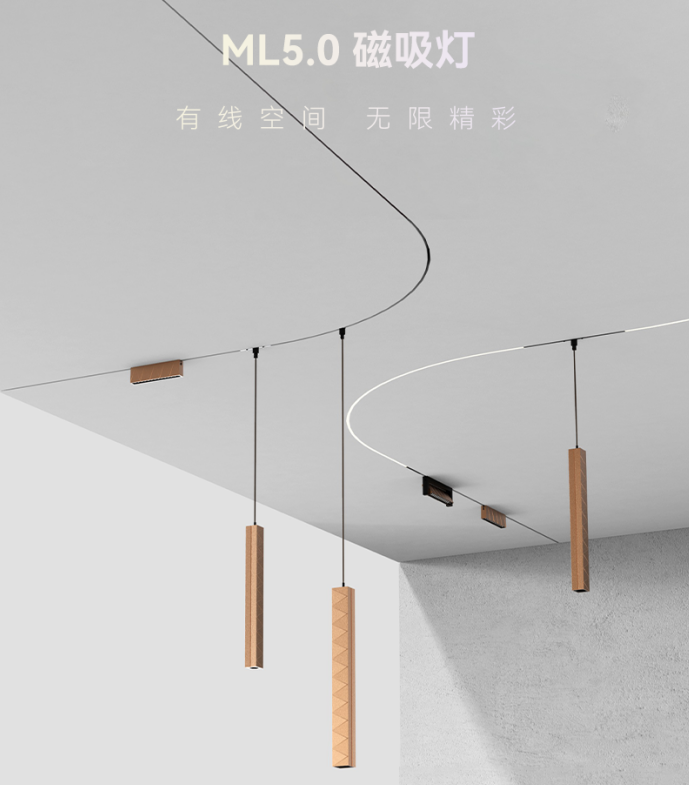ML5.0磁吸灯突破3.9mm超薄尺寸,搭载3重专利硬核技术和1+2+N磁吸智能照明解决方案,一站式解决多空间、多场景、多功能照明需求,引领简约超窄线形空间美学。