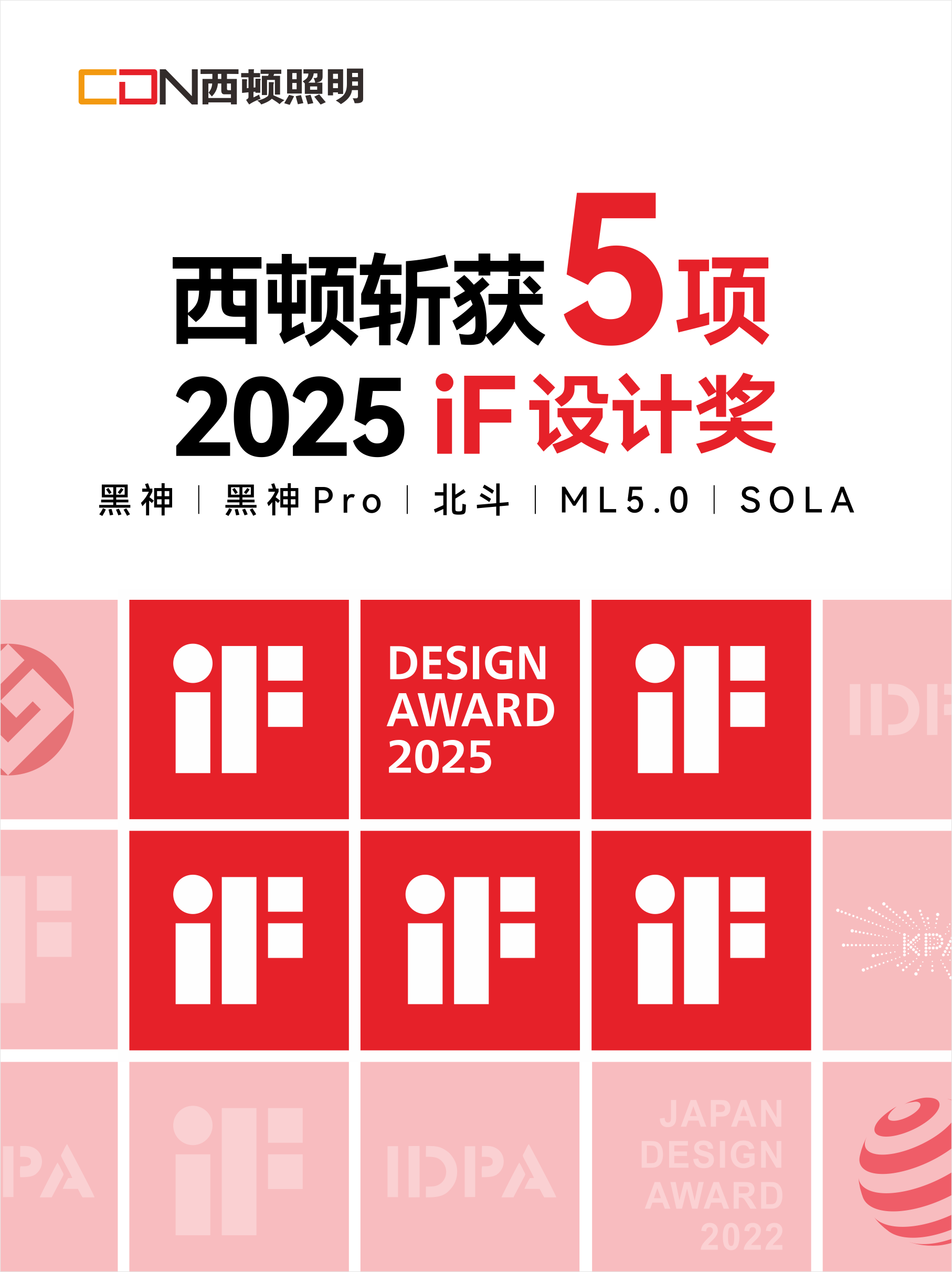德国iF设计奖自1953年创立以来,以“独立、严谨、可靠”的评审理念成为全球设计领域的权威认证,与德国红点奖、美国IDEA奖并称“世界三大设计奖”。西顿凭借原创工业设计、研发创新实力和光学技术突破,一举斩获2025年iF设计5项大奖,刷新照明行业纪录。在当前行业“内卷”与“外压”的双重挑战下,西顿作为中国高端照明领域的领军者,为中国照明行业开辟出一条创新发展的新路径。