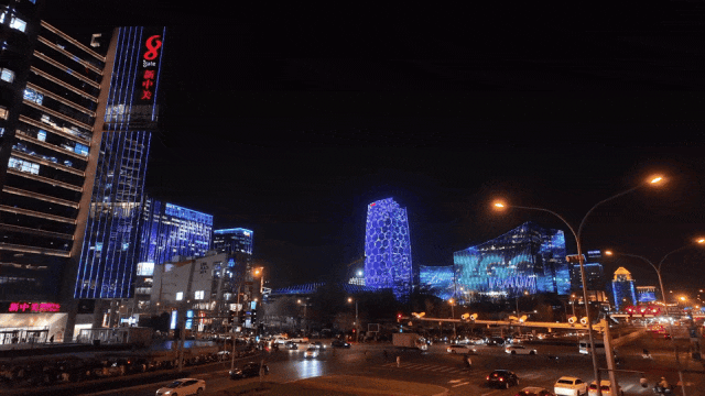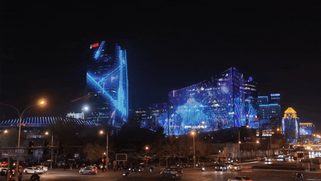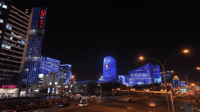 亮灯瞬间,北京市海淀科技地标化身灯光秀舞台,流光溢彩,美不胜收!