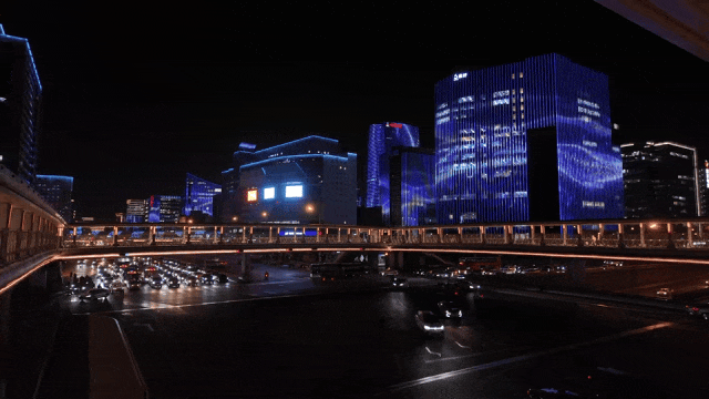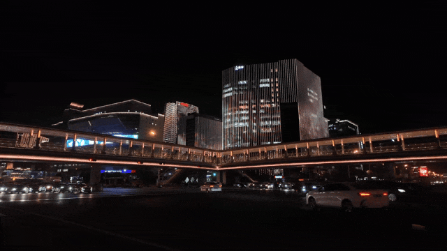 “此次灯光秀利用建筑的L形媒体立面塑造3D裸眼视觉‘盒子’,试图为观众带来身临其境的观影体验,营造一场充满未来感与科技魅力的视觉盛宴。”区城市管理委(交通委)广告景观管理科相关负责人介绍。