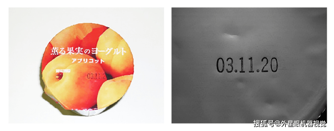 红外成像通过使其更易于阅读代码和有效期来为食品包装检查应用服务。例如,图5显示了酸奶杯的套印盖,其中难以读取有效期信息。在940 nm波长下,被打印图像中的墨水吸收并在有效期内被墨水反射的照明提供对比度,使日期更易于查看和成像。另外,该光还在包装的实际表面上暴露出诸如撕裂和孔洞之类的缺陷。